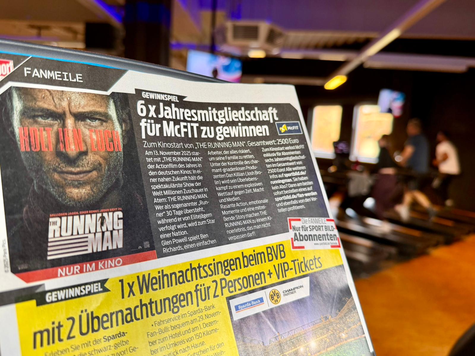Our large-scale trailer loop campaign is currently visible in all McFIT gyms across Germany. Via the McFIT channel and the screens in the training areas, the THE RUNNING MAN trailer reaches a highly relevant audience every day – perfectly aligned with the film’s high-energy atmosphere.