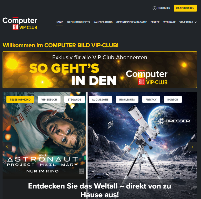 Zum Kinostart von DER ASTRONAUT – PROJECT HAIL MARY am 19. März 2026 realisierten wir eine aufmerksamkeitsstarke Kampagne in Zusammenarbeit mit Sony Pictures, BRESSER – dem Spezialist für Optik und Astronomie – als Markenpartner sowie einer reichweitenstarken Media-Kooperation mit COMPUTER BILD. Ziel war es, den Film im Vorfeld und zum Start aufmerksamkeitsstark zu inszenieren und gezielt technik- und science-affine Zielgruppen zu erreichen.